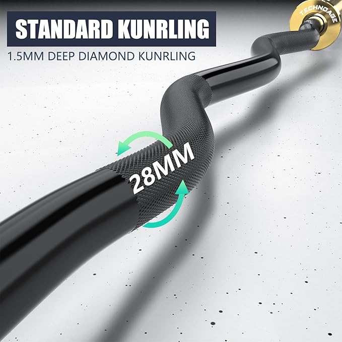 - DIAMOND KNURLING SHAFT: The deep diamond knurling of the curling bar can increase friction and help athletes hold the shaft firmly even when sweating, Avoid injury caused by slipping