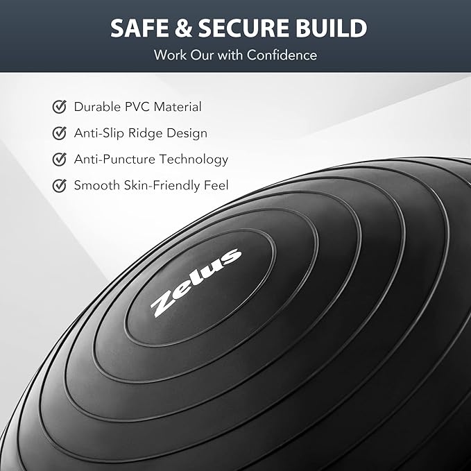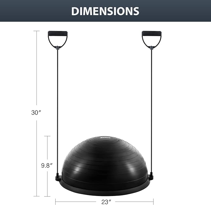 - BALL PUMP INCLUDED: A complete combo, this half-dome stability ball comes with a complimentary foot pump that makes it easy to get fully inflated to 9.8” in under 5 minutes. The ball’s high-quality air valve prevents air leakage and extends service life
