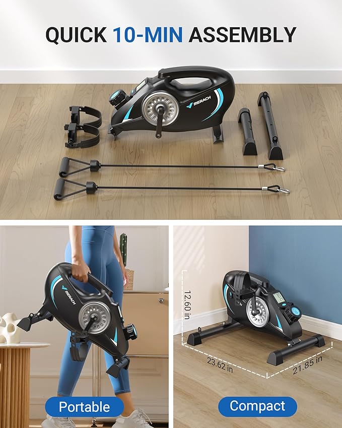 - 16-Level Smooth Magnetic Resistance: MERACH under desk bike operates on a magnetic resistance mechanism, allowing you to choose from multiple resistance settings. A cardio solution for office calorie burn, physical therapy, and even senior fitness!