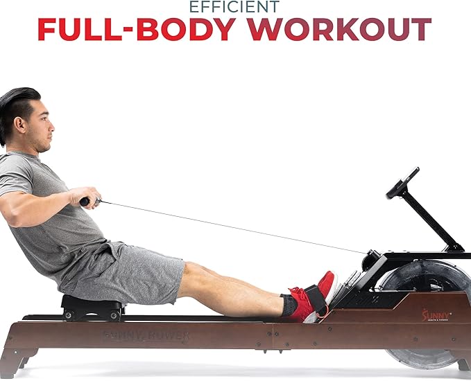 Sunny Health & Fitness Elite Water Rowing Machine with High Dynamic Resistance Vertical Tank, Low-Impact Full-Body Workout and Optional Free SunnyFit App Connectivity