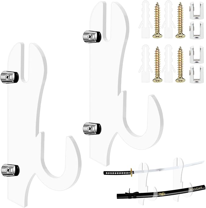 - 【Package Included】1 Pair Clear Sword Stands, 4 x Chrome Brackets, 4 x Screws, 4 x Anchors.