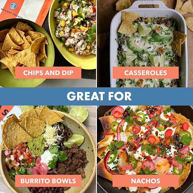 - CRUNCHY, VERSATILE, & FLAVORFUL - Whether paired with guacamole, topped with melted cheese, or enjoyed straight from the bag, these seed oil free chips are perfect for any occasion. Their bold, savory taste enhances everything from salsa chips at a party to healthier tortilla chips for a snack option.