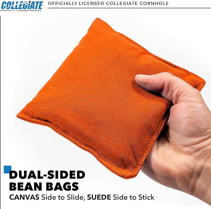 - REGULATION BEAN BAGS: The official size and weight bean bags come in vibrant team colors and are constructed from durable canvas material and feel great in your hand throw after throw.