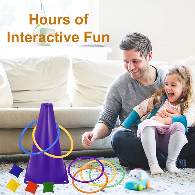 - High Quality Materials: Our combo set are made with sturdy and durable construction that is designed to last. The ring toss and cones are made of plastic with bright smooth colors. Bean bag are made with strong stitching and polyester fabric which are environment and ensure your kids are having fun.
