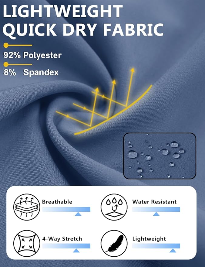 • 4-WAY STRETCH: Mens shorts have elastic waistband and adjustable internal drawstring, collocation 4-way stretch fabric ensures excellent mobility and maximum freedom of movement.