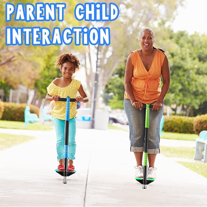 - Package Quantity: you will get 2 pogo sticks for kids, in 2 different colors, blue and green, 8.66 x 35 inch, it can serve the multi child family well, to create a joyful atmosphere for activities; Note: when children learn to play, they should use under the supervision of adults; It is not allowed to be applied as a vehicle for children on the road