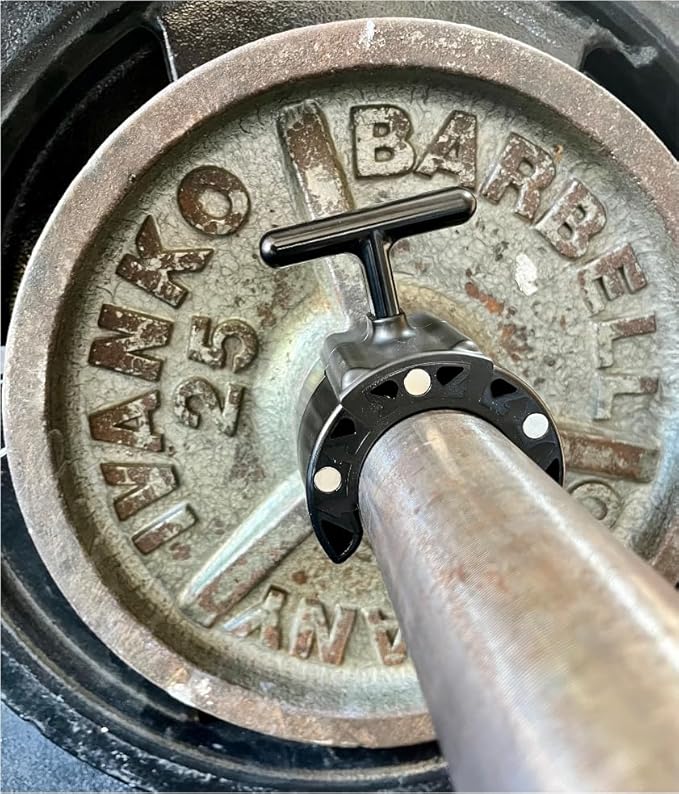 - CONVENIENT - Magnets allow for storage on the side of any squat rack. Keep the collar on the back of your hand with the T-handle while you change weights. No need to find a place to set the collar down.