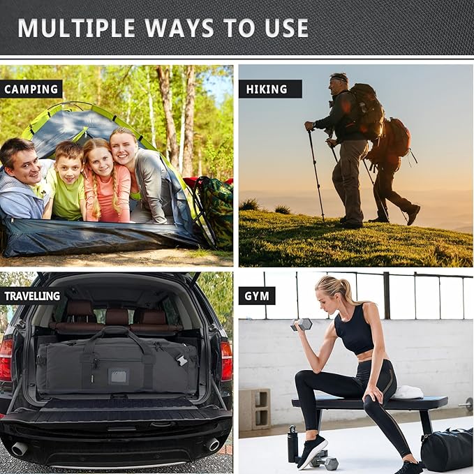 • MULTIPURPOSE: canvas gym duffle bag is suitable for both men and women and can be used as a weekender bag, large backpack for travel, sports equipment storage, car equipment bags, Family Storage Bag,deployment bag,or simply as a large duffle bag for Great for customers who like camping, outdoor sports, family travel,etc
