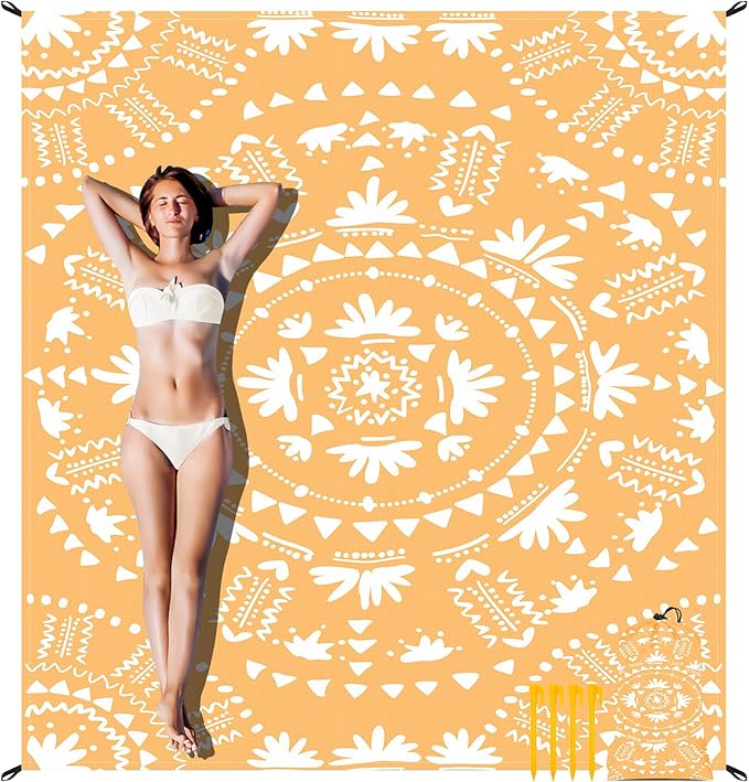 - Essential Beach Accessory - You'll have everything you need! With more style and color options, 4 sand corner pockets, and 4 stakes to double secure the beach blanket in place, you can prevent it from blowing away in high winds. You'll definitely stand out with this personalized beach blanket decor for camping, travel, or other outdoor activities