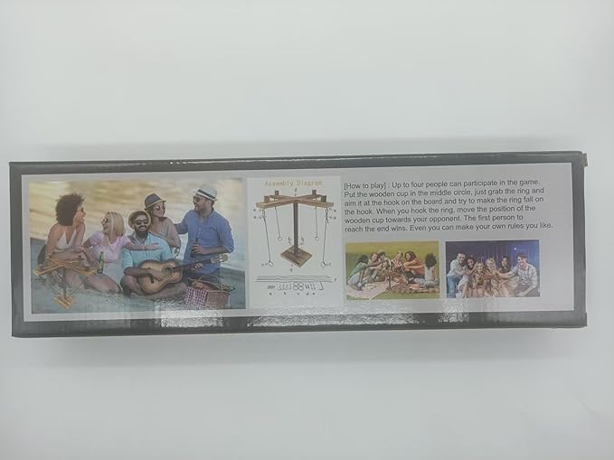 - 【How to play】 Up to four people can participate in the game. Put the wooden cup in the middle circle, just grab the ring and aim it at the hook on the board and try to make the ring fall on the hook. When you hook the ring, move the position of the wooden cup towards your opponent. The first person to reach the end wins. Even you can make your own rules you like.