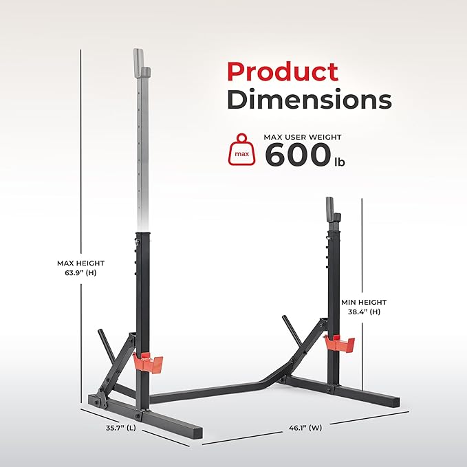 - 【USER-FRIENDLY ADJUSTMENTS】The rack features easy-to-use level hole indicators, simplifying bar adjustments and spotter arm positioning. Making it quick and straightforward to customize your exercises for an efficient training session.