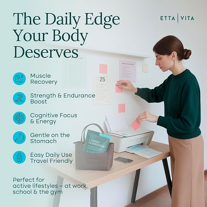 - Potent Formula & Improved Bioavailability - Etta Vita’s unique formula of Creatine Monohydrate is effective, with 1g of Creatine per gummy. The gummies are coated in an MCT Oil, which improves bioavailability and absorption in the body. Creatine helps reduce post-workout muscle fatigue, improve athletic performance, and increase muscle development and growth.