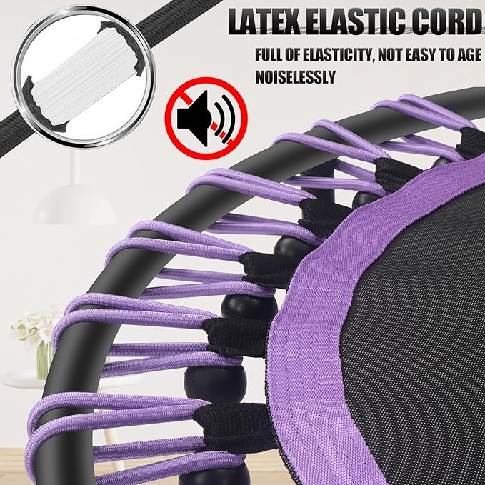 - ✅【Good Elasticity】:The bungee-rope design system with 30 thickened ropes which are 0.32"(8MM) of diameter provides joint-friendly suspension, reduces noise in maximum extent, affords more stability, and gives you a great jumping experience. Special tool is included for assembly.