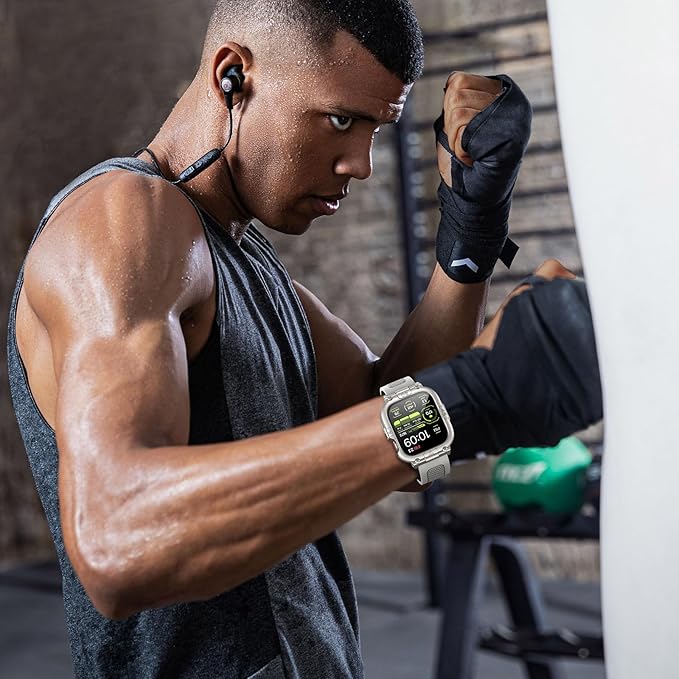 • Premium Material: Rugged sport watch bands with cases are made of high-toughness PC and soft TPU materials and frame with PC hard case inside built-in tempered glass screen protector. The iwatch band men is lightweight, durable, anti-dust, sweat-resistant, dirt-proof.