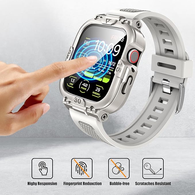 • Premium Material: Rugged sport watch bands with cases are made of high-toughness PC and soft TPU materials and frame with PC hard case inside built-in tempered glass screen protector. The iwatch band men is lightweight, durable, anti-dust, sweat-resistant, dirt-proof.