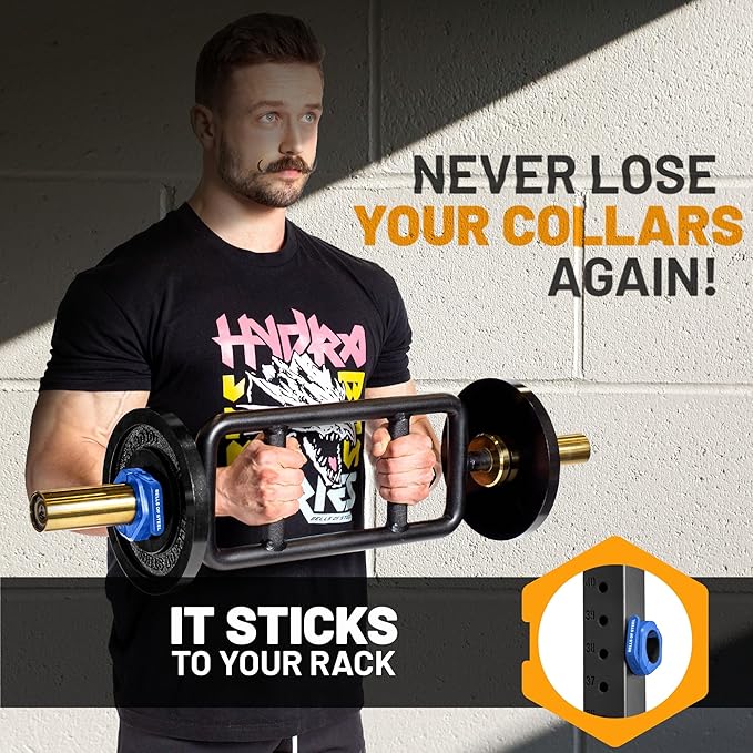 - Space for More Gainz - These weight clamps don't just hold your plates; they make room for more. More plates mean more weight, and more weight means more gainz! They’re magnetized, so you can stick ’em anywhere your power rack: on the uprights, on the crossmembers or on the feet.