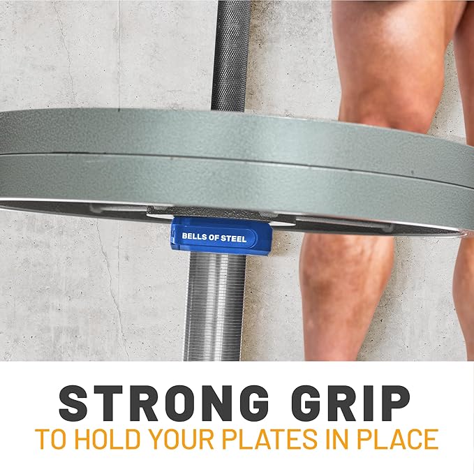 - What's in the Package - Your new Bells of Steel Weight Bar Clamps with a rubberized inner layer to protect your bar. 0.2lb each; 1.06in width, 3in outer diameter.