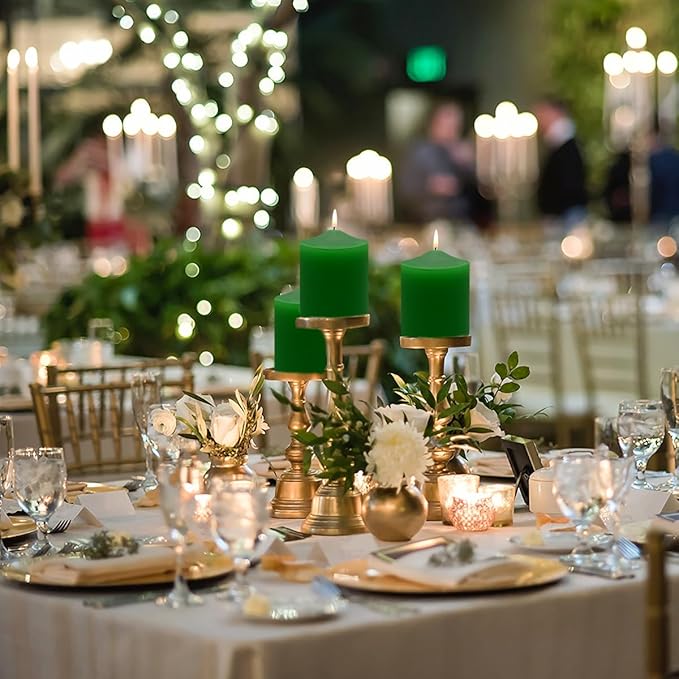 - CLEAN BURNING: The 3inch green pillar candles are made using paraffin wax and 100% pure cotton wicks for brighter, longer and cleaner burning;