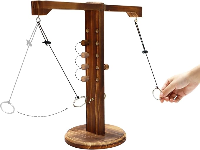 - Ring Toss Shot Game: Compared to other tabletop hook games, we equipped with a rope adjuster is convenient to adjust the length of the rope, and offer three different sizes of rings, to increase game difficulty and enhance the gaming experience
