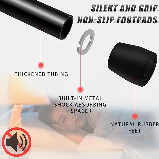 - 【Natural Rubber Foot Mats】Newan 8 legs covered with anti-slid rubber cap,There is a little ingenious washer inside the rubber leg caps that keep the leg itself from cutting through the rubber cap after so many uses and body weight pushing down on the metal leg caps and cutting through,make the trampoline reduces noise in maximum extent and more stable grip for safety and non-slip and protecting the floor.It is quiet so You can watch TV while working on the rebounder.