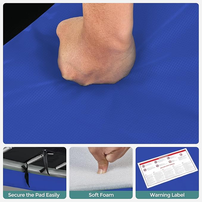 - [Its Durability Lies In...] Its durable material mix of a UV- and water-resistant 310 g/㎡ PVC (500D) cover, 15 mm thick EPE foam, 130 g/㎡ PE bottom, and skilled stitching, which is committed to protecting your trampoline on rainy and sunny days alike