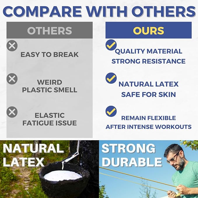 - 【DURABLE AND SAFE】:Our resistance bands are made of natural latex, they are non-irritating and harmless to skin, safe for all level users, due to quality raw material, they are very durable and flexible that can withstand extreme force, give you a big hand when doing intense workouts. Our resistance band can last for years, help you save money from buying others poor band.