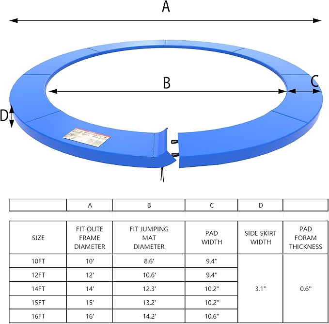 - 【High Quality Material】Polwkscas 14FT Trampoline Pad exquisitely crafted from well-selected PVC and PE which are characterized by higher durability, tear-resistance and weather-resistance for long-lasting use.at the bottom of the trampoline pad, making the trampoline padding easy to clean, and extend the service life of your trampoline from rain, sunlight weathers