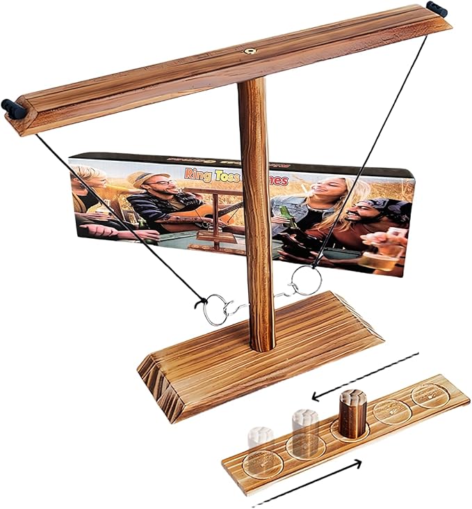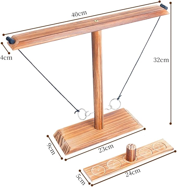 - 【Rules of the game】The 2 player game is to place the wooden cup in the middle of the circle, pick up the circle and go! For each hook you take, move the wooden cup 1 space towards your opponent. The player wins when the wooden cup is moved away from the end of the ladder. Agree on a bet with your competitor before the game and play each style of game.