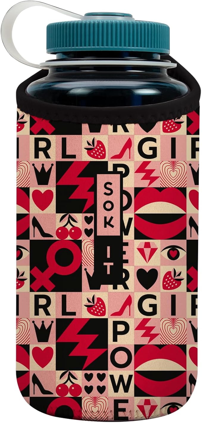 Sok It BotlSok Water Bottle Sleeve Insulated Neoprene Cover (Girl Power, Fits 32oz Nalgene)