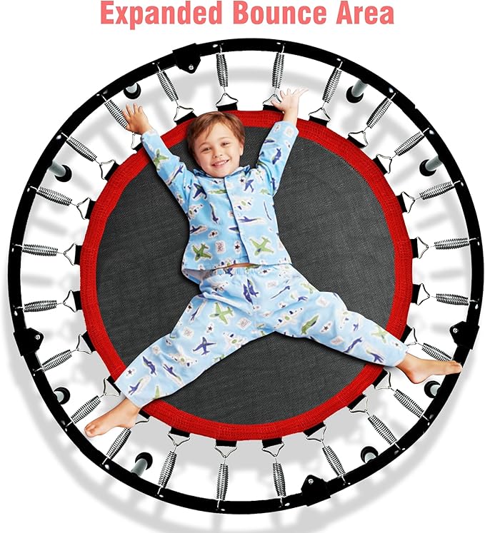 - Spacious Jumping Area for Enhanced Comfort - Compared to previous models, RAVS exercise trampoline for adults offers a 25% larger jumping surface, providing ample space for exercise or recreational bouncing. With 80% pre-assembled, it's quick and easy to set up, so you can start bouncing right away. Whether for adult fitness or kids' play, this indoor trampoline adults delivers a comfortable experience