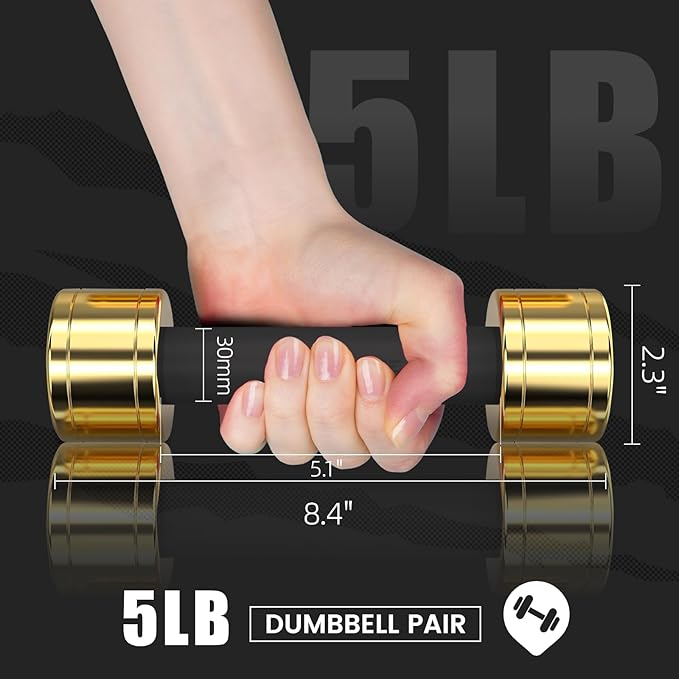 - Premium Materials: TECHNOAGE dumbbells are made of high-strength durable steel, ensuring long-term use without bending or breaking. The golden sheen surface design adds a touch of style to your home gym.