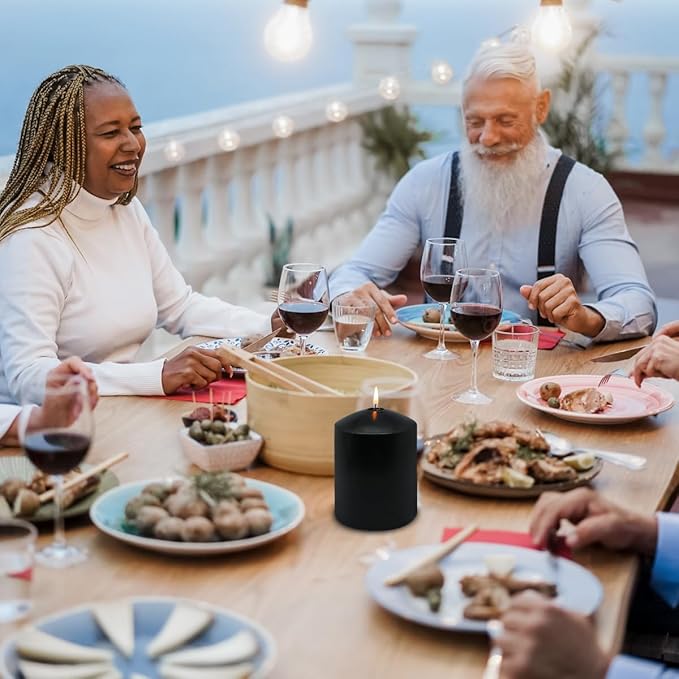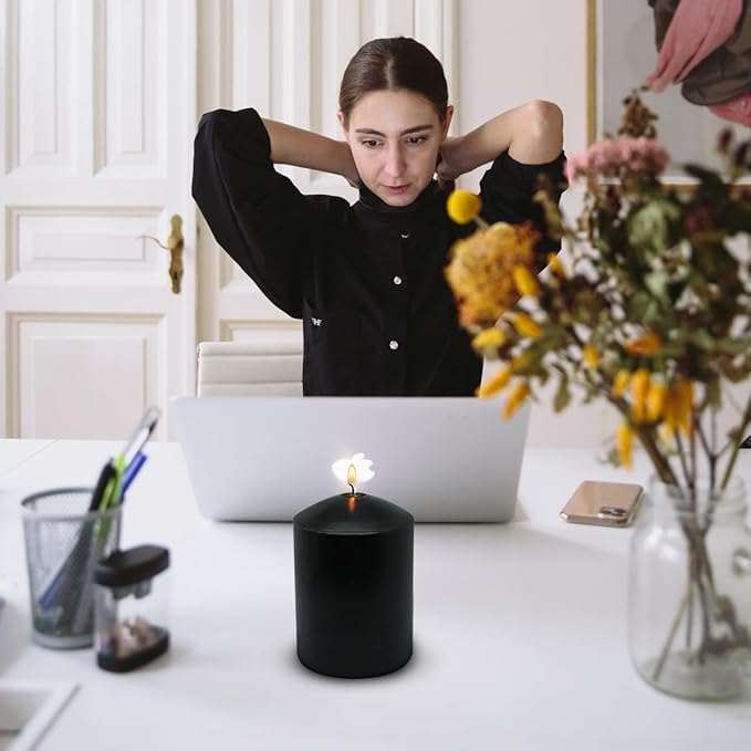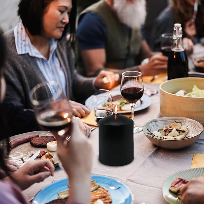 - CLEAN BURNING: Our 3inch black pillar candles are made using paraffin wax and 100% pure cotton wicks for brighter, longer and cleaner burning;