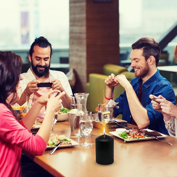 - LONG BURNING: The unscented 3x4 black pillar candles can burn continuously up to 45 hours, 135 hours in total without any smoke or flickers;