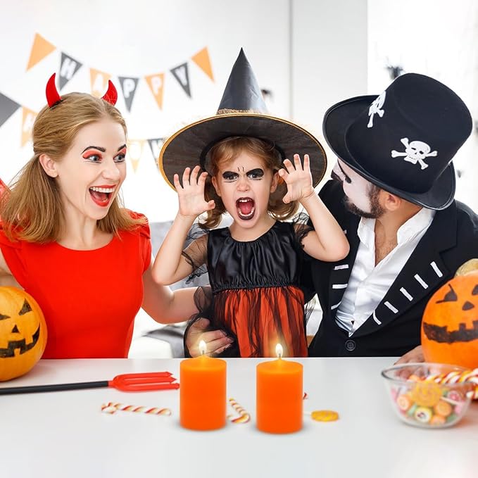 - Dripless and Smokeless: The orange colored cylinder candles are made of high-quality paraffin wax and wick, to prevent dripping and quick melt times, burn clean and smoke-free.