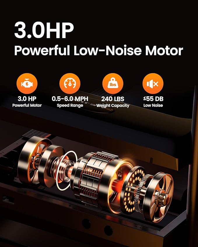 - COMFORTABLE RUNNING EXPERIENCE: This treadmill is equipped with powerful 3.0 HP low-noise motor. It not just holds 240 LBS capacity, but also revolves up to 6.0 MPH, suitable for most people. The running belt 39.4'' x 15'' of the treadmill for home is made of 5-layer non-slip textured material, extremely flexible and comfortable. 4 silicone and 6 built-in shock absorbers of the foldable treadmill form the scientific shock absorper system so as to provide maximum protection to joints and ankles