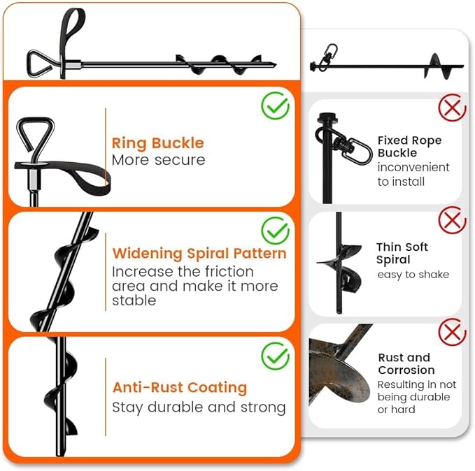 - 【Applicable to different geology】: The spiral blades of the ground anchor can easily penetrate hard soil, rocky soil, frozen soil, sand and gravel geology. And using the accessory tool, it can be inserted into the ground very quickly.