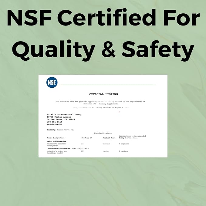 PRISTINE'S Creatine Monohydrate Capsules for Women & Men - NSF Certified 75 Day Supply 3G Muscle Growth Support Supplement - Cognitive & Athletic Performance Support - Enhanced Recovery