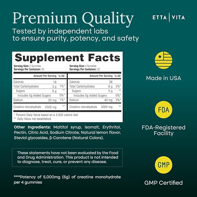 - [Delicious Natural Lemon Flavor] A refreshing, naturally flavored lemon gummy that makes daily creatine intake a treat, not a chore. No artificial aftertaste.