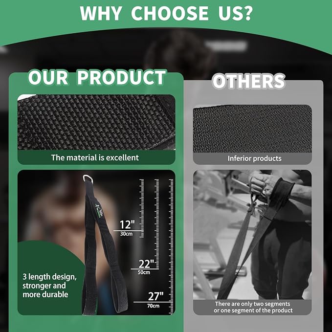- VERSATILE AND STURDY: Our durable strap with heavy-duty D Ring is compatible with universal gym systems, offering multi-workout versatility. Its three-in-one length design replaces traditional ropes, making it easy to carry for gym or home use
