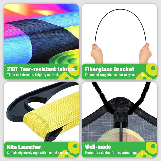 - EASILY ASSEMBLE & FLY: Includes easy-to-follow assembly instructions, an extra-long premium kite string (328ft) and an easy-grip handle kite spool. Easy to fold, carry and storage