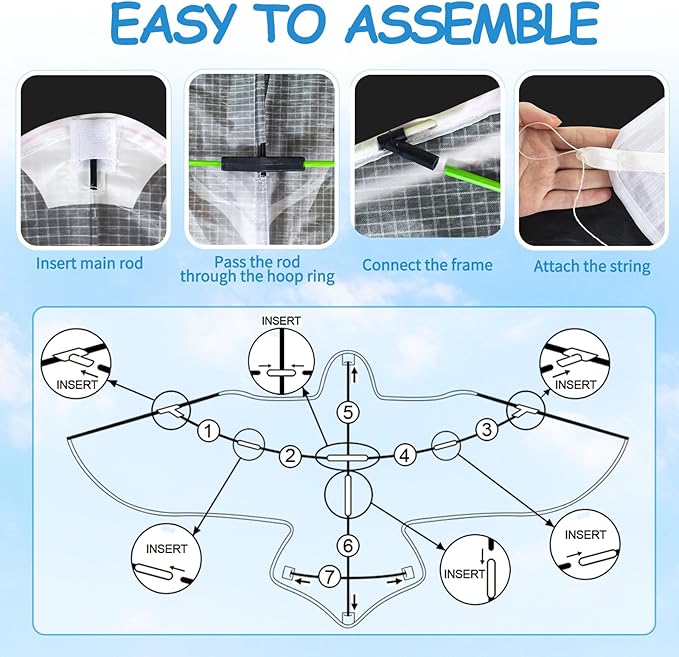 - 【Safe for Children Kite】The TCVENTS kites are made from high quality fabric, rip-stop, sturdy and high strength, not easy to be torn up. Reinforced fiberglass frames makes flight more stable. Easy to fly for kids 4-8 8-12 years old, safe for children and suitable for all skill levels