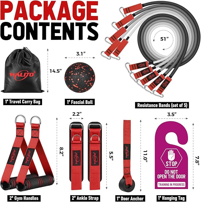 WALITO Resistance Bands Set - Exercise Bands with Handles, Door Anchor, Legs Ankle Straps, for Heavy Resistance Training, Physical Therapy, Muscle Training, Yoga, Home Workouts, Gym Equipment