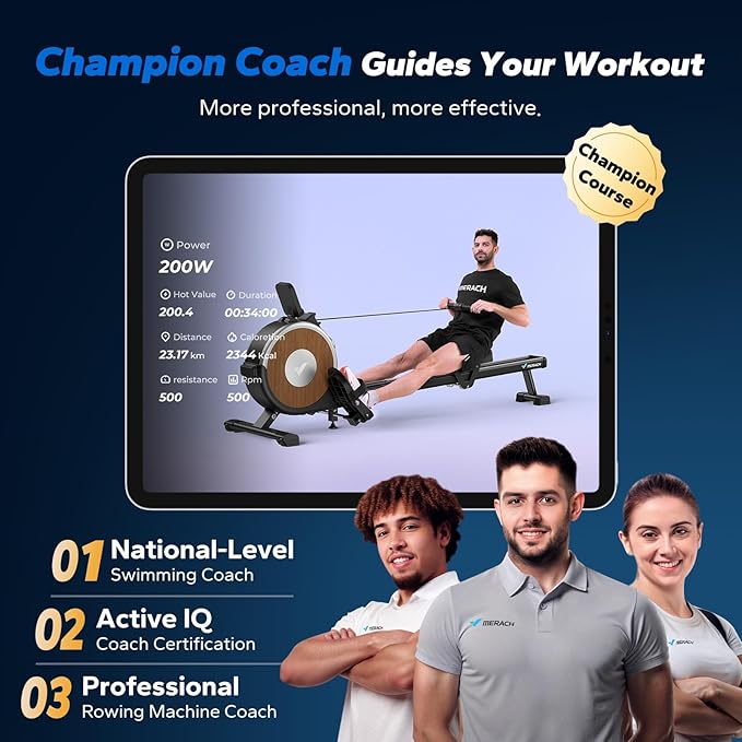 - MERACH APP: Our exclusive app offers you a variety of free trainer-led exercise classes, scenic rowing modes, and personalize your fitness program. Track your workout progress with live metrics. Designed to help you reach your goals. (Also KINOMAP Compatible)
