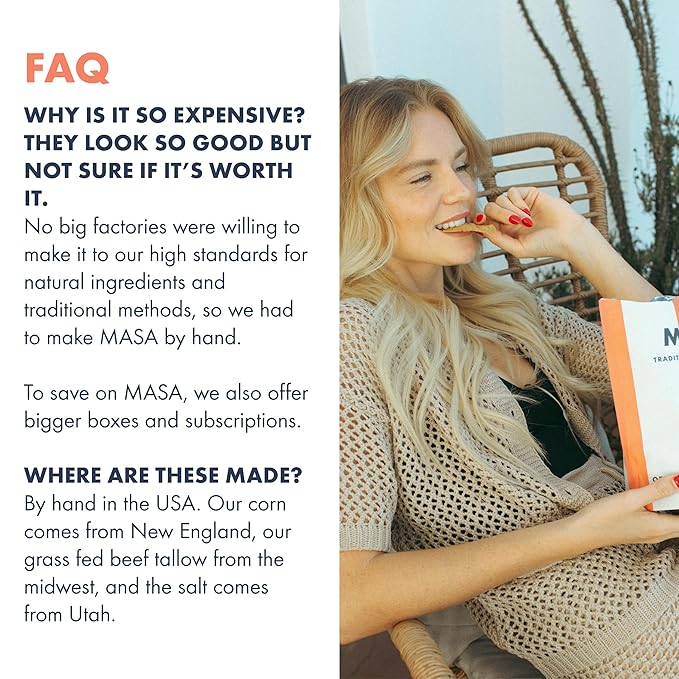 - Handcrafted Perfection - At Masa Chips, we fry our tortilla chips in small batches and carefully inspect every tortilla chip to ensure the perfect level of crunch, salt, and savor. We are proud of this artisanal chip, and we hope you enjoy it.
