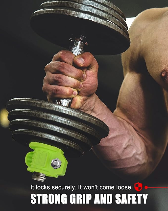 - ✔STRONG GRIP:Weight bar clips are specially designed for weightlifting and designed to provide an extra secure grip.Use these weight clips to hold your weights in place(Weight: 400+lbs)so they don't go rolling around while you're lifting. The proof of strength, even if you hold the dumbbell vertically(Weight: 60lbs), you can keep the weight! These weightlifting clips are perfect for dumbbell rows,benching, squatting etc.
