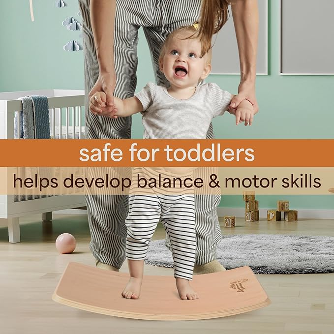 - 💪 SUPERIOR & HIGH QUALITY - The balance board is made entirely out of NATURAL WOOD giving it increased resistance and holding up to 488 lbs, so hop on the board together with your little one, there's room for both - NON-TOXIC COATING ensures the wood stays well protected as well as your and your children's health - professional craftsmanship not only gives this unique toy a very desirable look but also ensures ALL EDGES ARE CHILD SAFE and free of splinters;