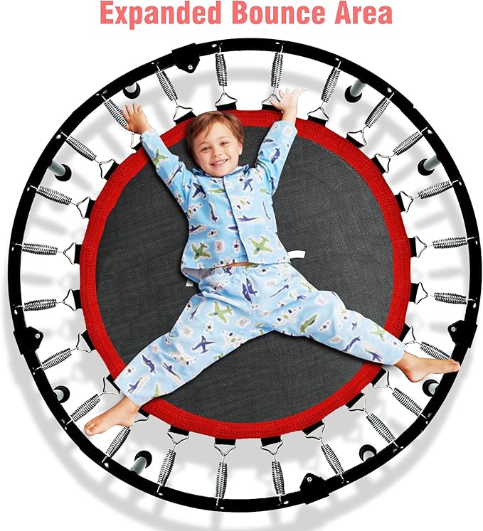 - Spacious Jumping Area - RAVS upgraded rebounder trampoline model offers an impressive 25% larger jumping surface compared to our previous design. Enjoy ample space for exercising or engaging in recreational bouncing, providing enhanced comfort, flexibility, and a truly immersive experience for users