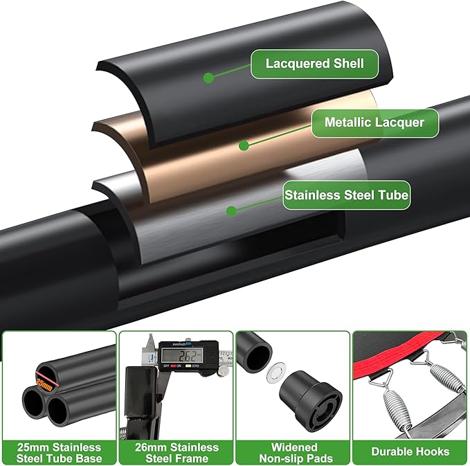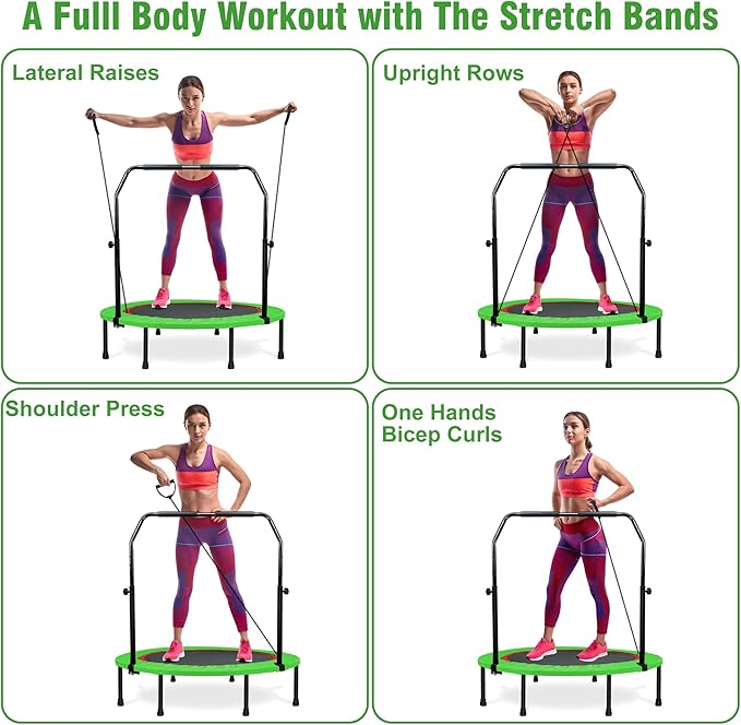 - Integrated Stretch Bands - Our exercise trampoline comes equipped with tension ropes that require users to coordinate their bodies by grasping and controlling the bands. This feature enables you to adapt to different speeds, forces, and directions of movement, facilitating upper limb, core, and lower limb strength training. Embrace the added challenge and achieve a more effective workout
