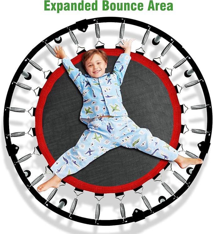 - Spacious Jumping Area - RAVS upgraded rebounder trampoline model offers an impressive 25% larger jumping surface compared to our previous design. Enjoy ample space for exercising or engaging in recreational bouncing, providing enhanced comfort, flexibility, and a truly immersive experience for users