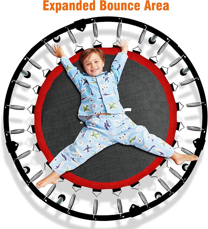 - Spacious Jumping Area for Enhanced Comfort - Compared to previous models, RAVS exercise trampoline for adults offers a 25% larger jumping surface, providing ample space for exercise or recreational bouncing. With 80% pre-assembled, it's quick and easy to set up, so you can start bouncing right away. Whether for adult fitness or kids' play, this indoor trampoline adults delivers a comfortable experience